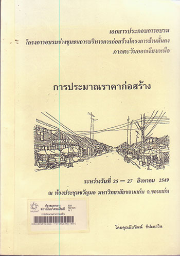 การประมาณราคาก่อสร้าง : เอกสารประกอบการอบรมโครงการอบรมช่างชุมชนการบริหารการก่อสร้างโครงการบ้านมั่นคงภาคตะวันออกเฉียงเหนือ / โดย ชัยวัฒน์ ทีปะนาวิน