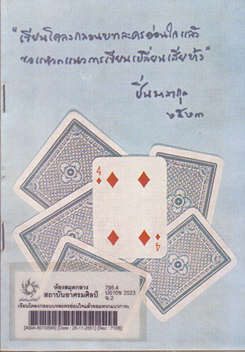 | 2. | หนังสือ | 795.4 ป616ข 2523 ฉ.2 Barcode: ASIA-B010599 | ►ศิลปะ นันทนาการ | On Shelf ขอยืม | |||||