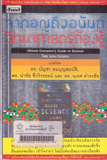จากอณูถึงอนันต์ วิทยาศาสตร์ต้องรู้ = Almost everyone is guide to science / โดย John Gribbin ; แปลโดย บัญชา ธนบุญสมบัติ, นำชัย ชีววิวรรธน์ และ นเรศ ดำรงชัย