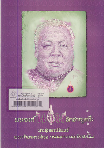 พระองค์นวมชัดชาญกวี : ประชุมพระนิพนธ์พระเจ้าบรมวงศ์เธอ กรมหลวงวงษาธิราชสนิท -- จินดามะณี เปนวิชา จะให้คล่องในภาษาสยาม --ตำราสรรพคุณยา ฉบับของ กรมหลวงวงษาธิราชสนิท -- ตำรารักษาไข้จับให้ตัวสั่น และ เรื่องยาคินิน -- เพลงยาวกลบทสิงโตเล่นหาง -- โคลงฤาษีดัดตน -- เพลงยาวความเก่า -- โคลงนิราศพระประทม -- โคลงจินดามณี พระนิพนธ์ พระเจ้าบรมวงษ์เธอชั้น 2 กรมหลวงวงษาธิราชสนิท -- คำกรมหมื่นวงศาสนิทเสนอที่ประชุม เรื่องอาการทรงพระประชวร -- จดหมายเหตุเรื่องทัพเชียงตุง -- พระราชพงศาวดาร ฉบับพระราชหัตถเลขา เล่ม 1-3 -- พระราชพงศาวดาร ฉบับพระราชหัตถเลขา (พิมพ์ครั้งที่ 2) กับคำอธิบายของพระเจ้าบรมวงศ์เธอ กรมพระดำรงราชนุภาพ เล่ม 1 -- พงษาวดารราชินิกูลบางช้าง -- คำให้การขุนหลวงหาวัด ฉบับหลวง |