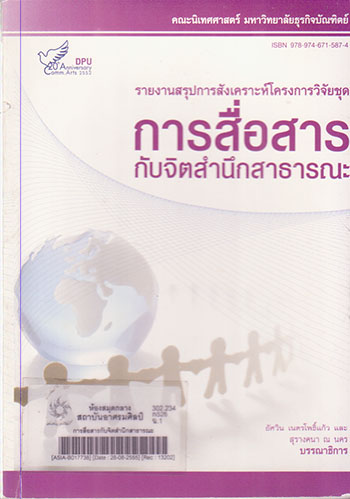 Partial Contents: สื่อเทคโนโลยีสารสนเทศกับจิตสำนึกสาธาณะของเยาวชน : กรณีศึกษา ชมรมมุสลิมในสถาบันอุดมศึกษา -- การถอดบทเรียนกระบวนการสื่อสารของกลุ่มเยาวชนในจิตสำนึกสาธารณะ -- บทบาทรายการโทรทัศน์สำหรับเด็กกับการสร้างจิตสำนึกสาธารณะ -- การสื่อสารการตลาดกับจิตสำนึกสาธารณะ -- การประชาสัมพันธ์กับจิตสำนึกสาธารณะ |