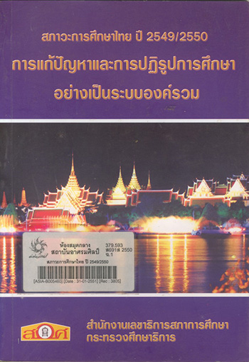 | 1. | หนังสือ | 379.593 ส691ส 2550 Barcode: ASIA-B005460 | ►สังคมศาสตร์ | On Shelf ขอยืม | |||||
