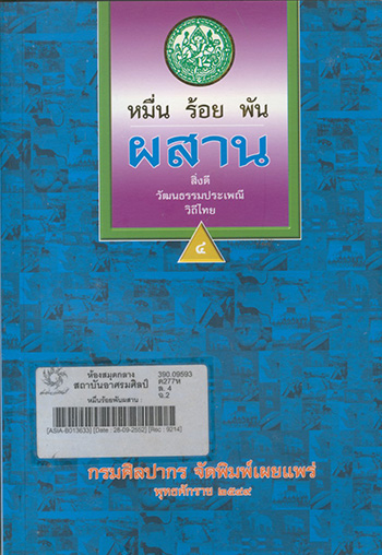 หมื่นร้อยพันผสาน : บันทึกสิ่งดีวัฒนธรรมประเพณีวิถีไทย / ดาวรัตน์ ชูทรัพย์, ค้นคว้าเรียบเรียง