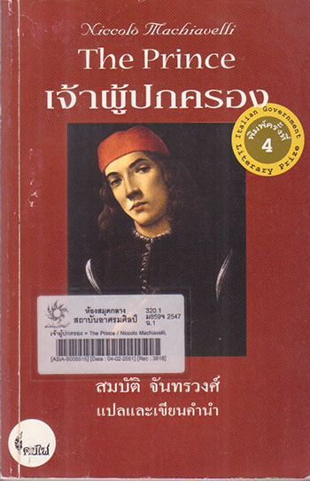 เจ้าผู้ปกครอง = The Prince / Niccolo Machiavelli, ผู้เขียน ; สมบัติ จันทรวงศ์, แปลและเขียนคำนำ