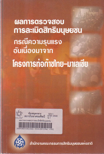 ผลการตรวจสอบการละเมิดสิทธิมนุษยชน : กรณีความรุนแรงอันเนื่องมาจากโครงการท่อก๊าซไทย-มาเลเซีย / จัดทำโดย สำนักงานคณะกรรมการสิทธิมนุษยชนแห่งชาติ
