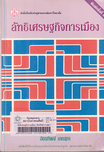 | 2. | หนังสือ | 330.1 ฉ114ล 2519 ฉ.2 Barcode: ASIA-B020720 | ►สังคมศาสตร์ | On Shelf ขอยืม | |||||