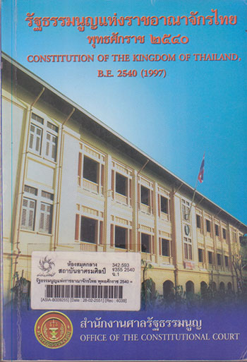 | 1. | หนังสือ | 342.593 ร355 2540 Barcode: ASIA-B009255 | ►สังคมศาสตร์ | On Shelf ขอยืม | |||||