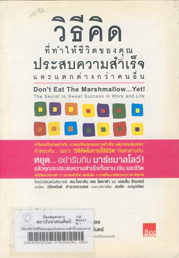 ชื่อเรื่องที่แตกต่าง  Dont eat the marshmallow...yet! : the secret to sweet success in work and life