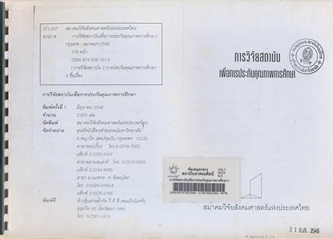 การวิจัยสถาบันเพื่อการประกันคุณภาพการศึกษา / สมาคมวิจัยสังคมศาสตร์แห่งประเทศไทย