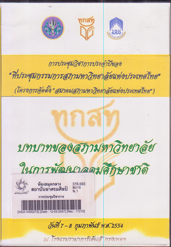 การประชุมวิชาการ ประจำปีของที่ประชุมกรรมการสภามหาวิทยาลัยแห่งประเทศไทย : บทบาทของสภามหาวิทยาลัยในการพัฒนาอุดมศึกษาชาติ / สำนักงานคณะกรรมการการอุดมศึกษา [VCD] /