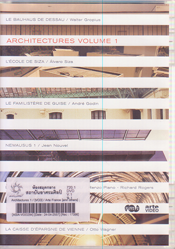 | 5. | สื่อวีดิทัศน์ | 720.1 DVD V.5 Barcode: ASIA-V000293 | ►ตู้สื่อโสตทัศน์ | On Shelf ขอยืม | |||||