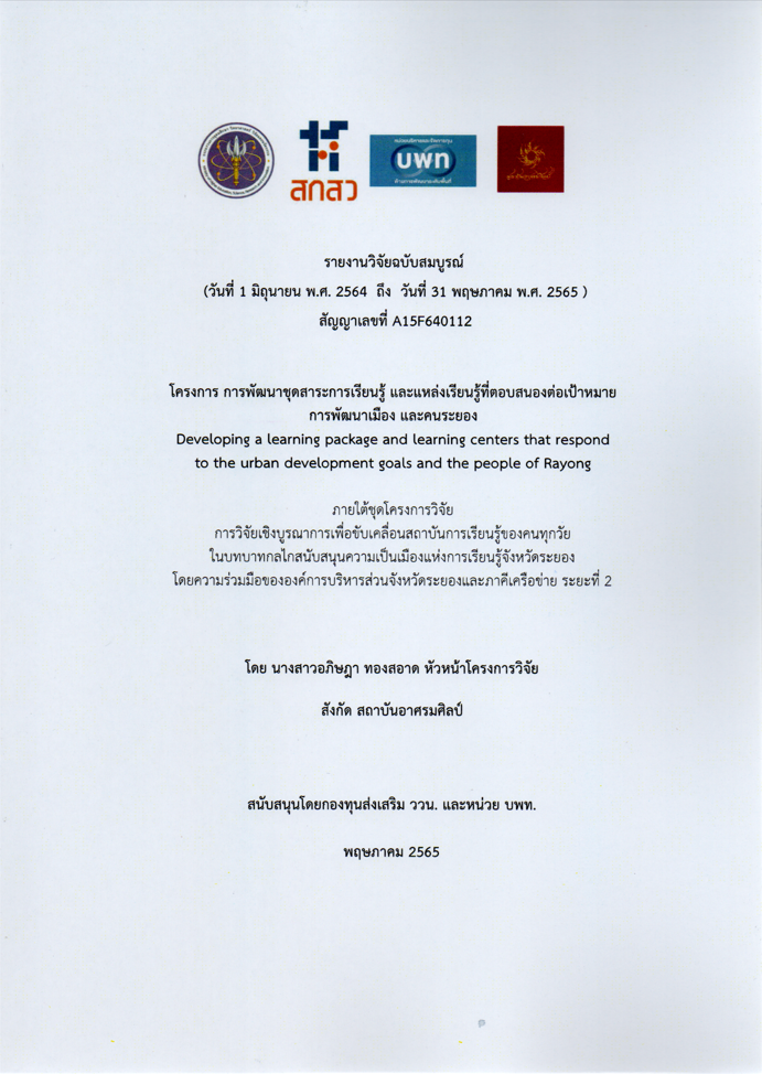 โครงการพัฒนาชุดสาระการเรียนรู้ และแหล่งเรียนรู้ที่ตอบสนองต่อเป้าหมายการพัฒนาเมือง และคนระยอง
