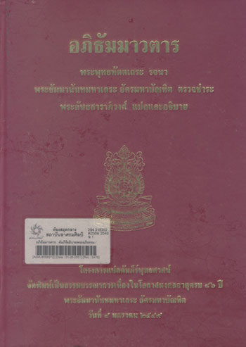 อภิธัมมาวตาร : คัมภีร์อธิบายพระอภิธรรม / พระคันธสาราภิวงศ์ : แปลและอธิบาย
