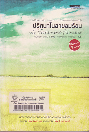 ปริศนาในสายลมร้อน = Le testament francais / อันเดรย์ มาคิน, เขียน ; งามพรรณ เวชชาชีวะ, แปล