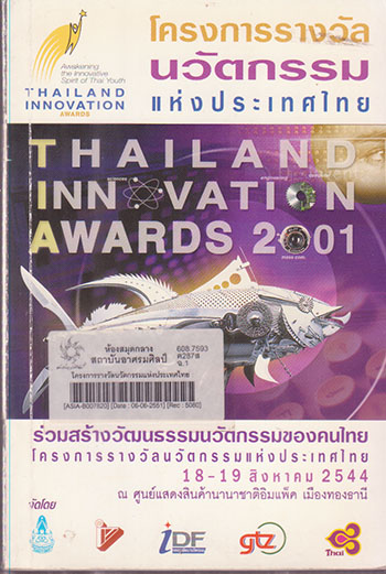 โครงการรางวัลนวัตกรรมแห่งประเทศไทย : ร่วมสร้างวัฒนธรรมนวัตกรรมของคนไทย 18-19 สิงหาคม 2544 ณ ศูนย์แสดงสินค้านานาชาติอิมแพ็ค เมืองทองธานี / จัดโดย สมาคมวิทยาศาสตร์แห่งประเทศไทย ... [และอื่นๆ] |