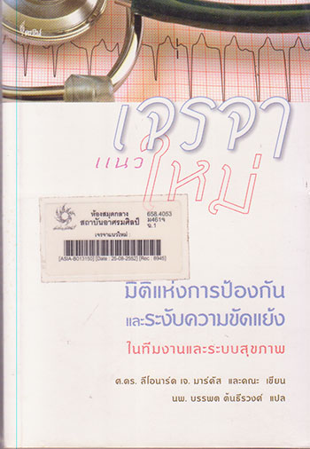 เจรจาแนวใหม่ : มิติแห่งการป้องกันและระงับความขัดแย้งในทีมงานและระบบสุขภาพ / โดย ลีโอนาร์ด เจ. มาร์คัส ; บรรพต ต้นธีรวงศ์ แปล