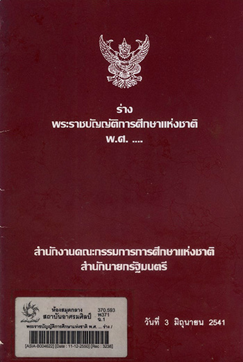 พระราชบัญญัติการศึกษาแห่งชาติ พ.ศ. ... ร่าง / คณะกรรมการการศึกษาแห่งชาติ สำนักนายกรัฐมนตรี |