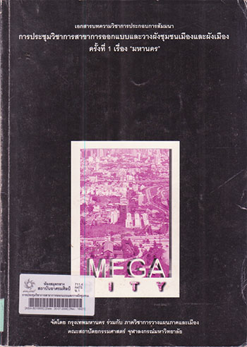 การประชุมวิชาการสาขาการออกแบบและวางผังชุมชนเมืองและผังเมือง ครั้งที่ 1 เรื่อง มหานคร : [เอกสารบทความวิชาการประกอบการสัมมนา] / จัดโดย กรุงเทพมหานคร ร่วมกับ ภาควิชาการวางแผนภาคและเมือง คณะสถาปัตยกรรมศาสตร์ จุฬาลงกรณ์มหาวิทยาลัย |