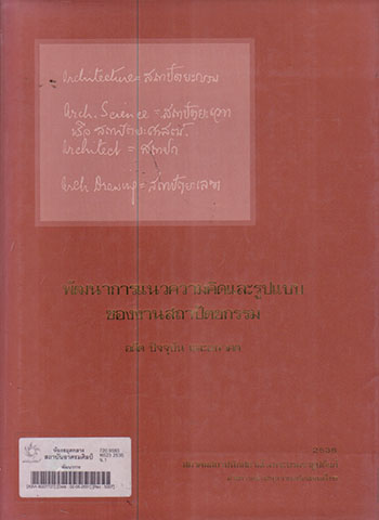 | 1. | หนังสือ | 720.9593 พ523 2536 Barcode: ASIA-B007727 | ►ศิลปะ นันทนาการ | On Shelf ขอยืม | |||||