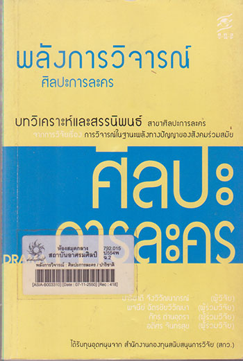 พลังการวิจารณ์ : ศิลปะการละคร / ปาริชาติ จึงวิวัฒนาภรณ์ ... [และคนอื่นๆ] |