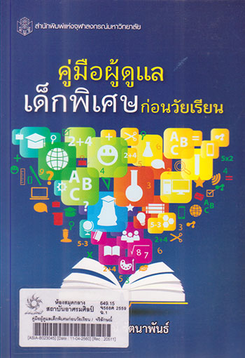 | รายการใกล้เคียง หัวเรื่อง [เด็กพิเศษ--การดูแล] หัวเรื่อง [เด็กวัยก่อนเข้าเรียน]