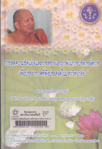 การลดความขัดแย้งและการสร้างเอกภาพในการบริหารจัดการเพื่อบรรยากาศที่พึงประสงค์ในมหาวิทยาลัยโดย พระธรรมโกศาจารย์ ศาสตราจารย์ และอธิการบดี มหาวิทยาลัยมหาจุฬาลงกรณราชวิทยาลัย เจ้าคณะภาค 2 เจ้าอาวาสวัดประยุรวงศาวาส / ถนอม อินทรกำเนิด, อัจฉรา ปัทมวิภาค