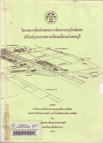โครงการจัดทำแผนการจัดการอนุรักษ์และปรับปรุงสภาพแวดล้อมเมืองเก่า ลพบุรี / เสนอต่อสำนักงานนโยบายและแผนสิ่งแวดล้อม กระทรวงวิทยาศาสตร์ เทคโนโลยีและสิ่งแวดล้อม โดย คณะสถาปัตยกรรมศาสตร์ มหาวิทยาลัยศิลปากร ; [หัวหน้าโครงการ : ประสงค์ เอี่ยมอนันท์... [และคนอื่นๆ]