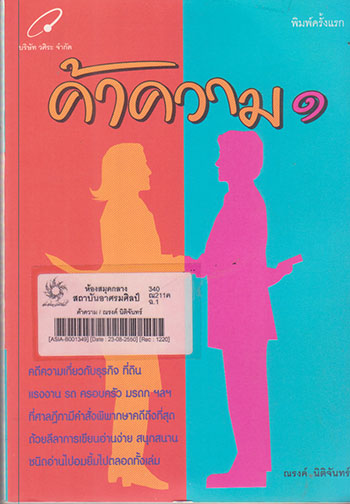 | 1. | หนังสือ | 340 ณ211ค Barcode: ASIA-B001349 | ►สังคมศาสตร์ | On Shelf ขอยืม | |||||