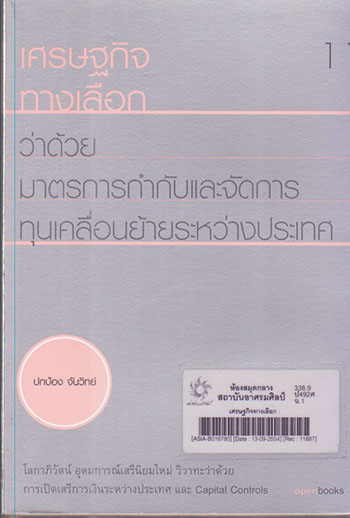 ชื่อชุด  เศรษฐกิจทางเลือกเล่ม 1 ว่าด้วยมาตรการกำกับและจัดการทุนเคลื่อนย้ายระหว่างประเทศ