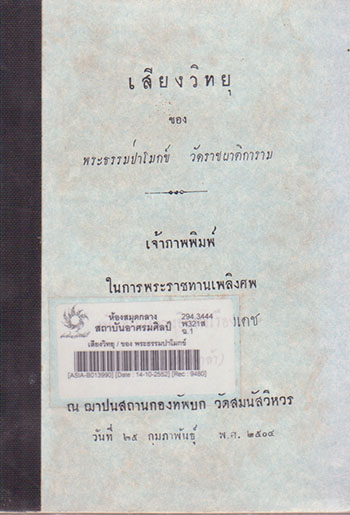 | 1. | หนังสือ สถานะ=หาย | 294.3444 พ321ส 2504 Barcode: ASIA-B013990 | ►ศาสนา | On Shelf ขอยืม | |||||