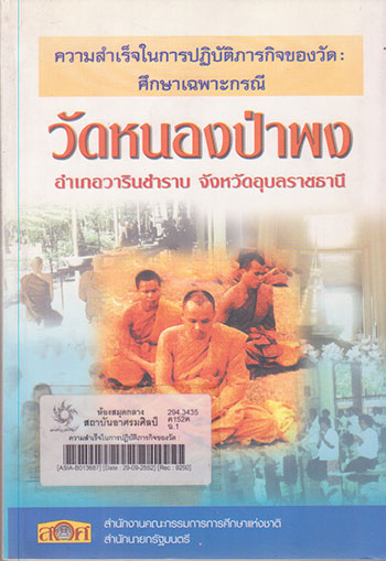 ความสำเร็จในการปฏิบัติภารกิจของวัด : ศึกษาเฉพาะกรณีวัดหนองป่าพง อำเภอวารินชำราบ จังหวัดอุบลราชธานี / คนึงนิตย์ จันทบุตร และสุบรรณ จันทบุตร