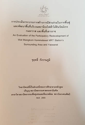 An Evaluation of the Participatory Redevelopment of Wat MangKorn Kammalawat MRT station s Surrounding Area and Yaowarat |