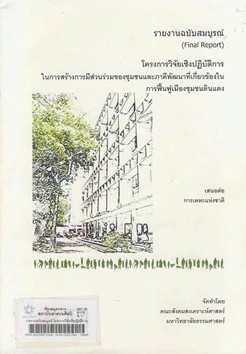 รายงานฉบับสมบูรณ์ โครงการวิจัยเชิงปฏิบัติการ ในการสร้างการมีส่วนร่วมของชุมชนและภาคีพัฒนาที่เกี่ยวข้องในการฟื้นฟูเมืองชุมชนดินแดง / คณะสังคมสงเคราะห์ศาสตร์ มหาวิทยาลัยธรรมศาสตร์