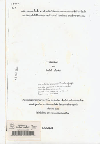 พฤติกรรมความเอื้อเฟื้อ ความมีระเบียบวินัยและความสามารถในการใช้กล้ามเนื้อเล็กของเด็กปฐมวัยที่ได้รับประสบการณ์สร้างสรรค์ (ศิลปศึกษา) โดยใช้คำประกอบ / วิลาวัลย์ เผือกพ่วง.