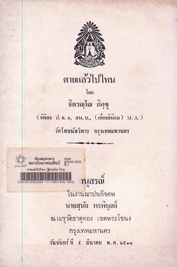 | 1. | หนังสือ | อนศ ฐ234ต 2530 Barcode: ASIA-B010220 | ►หนังสืองานศพ | On Shelf ขอยืม | |||||