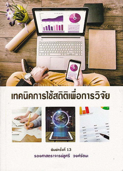Contents: ความเข้าใจเบื้องต้นเกี่ยวกับ ^"สถิติ^" -- การแจกแจงความถี่ --การวัดแนวโน้มเข้าสู่ส่วนกลาง -- การวัดการกระจาย -- การแจกแจงปกติ -- ทฤษฎีการเลือกตัวอย่าง -- การทดสอบสมมติฐาน --การทดสอบเกี่ยวกับค่าเฉลี่ยและสัดส่วน --การทดสอบความแตกต่างระหว่างค่าเฉลี่ยสองค่าที่ได้จากกลุ่มตัวอย่างสองกลุ่มที่เป็นอิสระจากกัน -- การทดสอบความแตกต่างระหว่างค่าเฉลี่ย 2 ค่าที่ได้จากกลุ่มตัวอย่างสองกลุ่มที่ไม่เป็นอิสระจากกันหรือกลุ่มตัวอย่างสัมพันธ์กัน --การวิเคราะห์ความแปรปรวนแบบมีหนึ่งตัวประกอบ --การวิเคราะห์ความแปรปรวนมีสองตัวประกอบ --การวิเคราะห์ความแปรปรวนร่วม -- สหสัมพันธ์และการวิเคราะห์ถดถอย --สถิติวิเคราะห์ตัวแปรพหุนาม -- การทดสอบไค-สแควร์ --สถิติน๊อนพาราแมตริก |