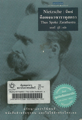 คือพจนาซาราทุสตรา = Thus spoke Zarathustra : a book for all and none / นีทเช่ เขียน ; มนตรี ภู่มี แปล