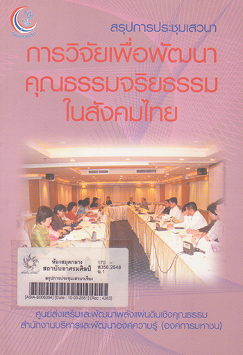 สรุปการประชุมเสวนาเรื่อง การวิจัยเพื่อพัฒนาคุณธรรม จริยธรรมในสังคมไทย / ศูนย์ส่งเสริมและพัฒนาพลังแผ่นดินเชิงคุณภาพ