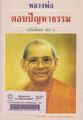 | รายการใกล้เคียง ผู้แต่ง [พระมหาวีระ ถาวโร] หัวเรื่อง [พุทธศาสนา คำถามและคำตอบ] |