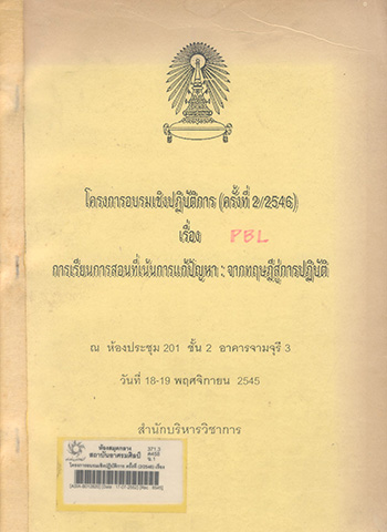 โครงการอบรมเชิงปฏิบัติการ ครั้งที่ (2/2546) เรื่อง การเรียนการสอนที่เน้นการแก้ปัญหา จากทฤษฎีสู่การปฏิบัติ / สำนักบริหารวิชาการ