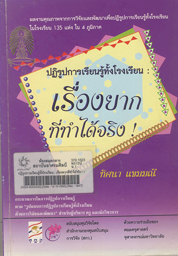 ชื่อชุด  โครงการวิจัยและพัฒนาเพื่อปฏิรูปการเรียนรู้ทั้งโรงเรียน