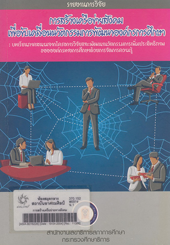 การสร้างเครื่อข่ายทางสังคม เพื่อขับเคลื่อนนวัตกรรมการพัฒนาองค์กรค์การศึกษา บทเรียนภาคสนามจากโครงการวิจัยและพัฒนานวัตกรรมการเพิ่มประสิทธืภาพขององค์กรทางการศึกษาด้วยการจัดการความรู้ / สำนักงานเลขาธิการสภาการศึกษา .