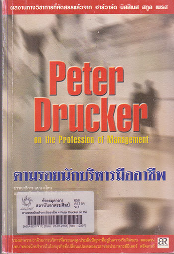 ตามรอยนักบริหารมืออาชีพ = Peter Drucker on the profession of management / โดย ปีเตอร์ เอฟ ดรัคเกอร์ ; แปลและเรียบเรียงโดย ชื่นจิตต์ แจ้งเจนกิจ