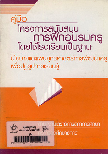 คู่มือ โครงการสนับสุนนการฝึกอบรมครูโดยใช้โรงเรียนเป็นฐาน : นโยบายและแผนยุทธศาสตร์การพัฒนาครูเพื่อปฏิรูปการเรียนรู้ / สำนักงานเลขาธิการสภาการศึกษา