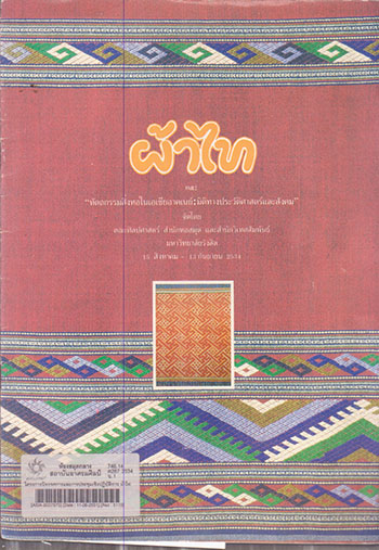 ชื่อเรื่องเพิ่ม  ผ้าไท และ ^"หัตถกรรมสิ่งทอในเอเชียอาคเนย์ : มิติทางประวัติศาสตร์และสังคม^"